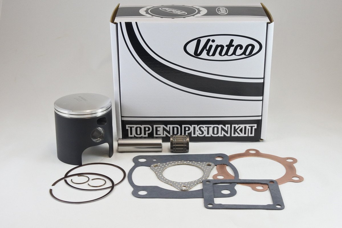 VintCo has all new Top End Piston kits to help you keep the ride going! These complete top end kits come with everything you need to get your rebuild done easily and cost effectively. This kit includes a high quality VintCo Piston kit (piston, rings, pin and clips), top end bearing and a full top-end gasket kit (head gasket, base gasket, intake gasket, and exhaust gaskets). All components are made with modern materials and manufacturing techniques to ensure an as good or better than OEM fitment and performance. This Kawasaki KX250 1978-79 Top End Piston Kit, will save you 10% compared to buying the pieces individually. The OEM part numbers are provided to ensure an exact fitment as well. More size options are also available.